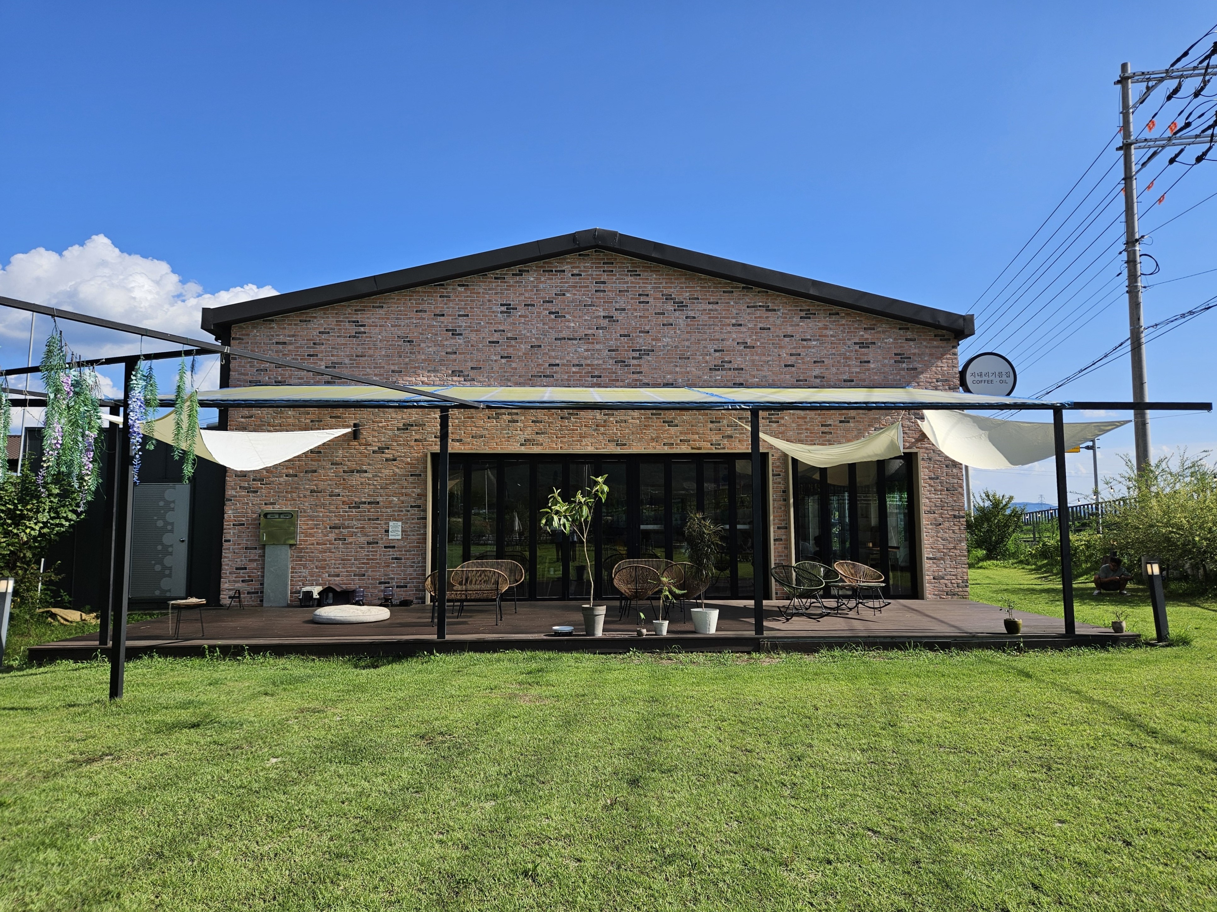 카페, 뒷마당, 정원, 벽돌